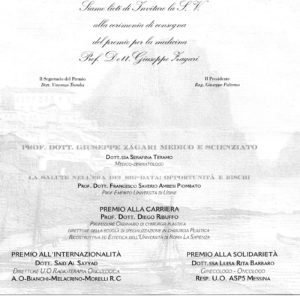 I premiati della settima edizione saranno: il prof. dott. Diego Ribuffo, professore ordinario di Chirurgia Plastica e Direttore della scuola di specializzazione in chirurgia Plastica, Ricostruttiva ed Estetica dell’Università di Roma La Sapienza e Direttore della UOC di Chirurgia Plastica del Policlinico Umberto I di Roma, a cui andrà il premio alla carriera; la dott.ssa Luisa Rita Barbaro Ginecologo-Oncologo Responsabile U.O. dell’ASP 5 di Messina, per il premio alla solidarietà; al dott. Said Al Sayyad, Direttore U.O. Radioterapia Oncologica A.O. Bianchi-Melacrino-Morelli di Reggio Calabria per il premio alla Internazionalità. (Redazione)